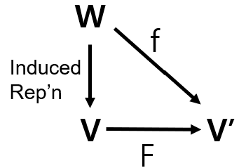 Lemma 1. Suppose that $(V,\rho)$ is induced by $(W,\theta)$. Let $\rho':G \rightarrow GL(V')$ be a linear representation of $G$, and let $f:W \rightarrow V'$ be a linear map such that $f(\theta_{t}w) = \rho'_{t}f(w)$ for all $t \in H$ and $w \in W$. Then there exists a unique linear map $F:V \rightarrow V'$ which extends $f$ and satisfies $F \circ \rho_{s} = \rho'_{s} \circ F$ for all $s \in G$.