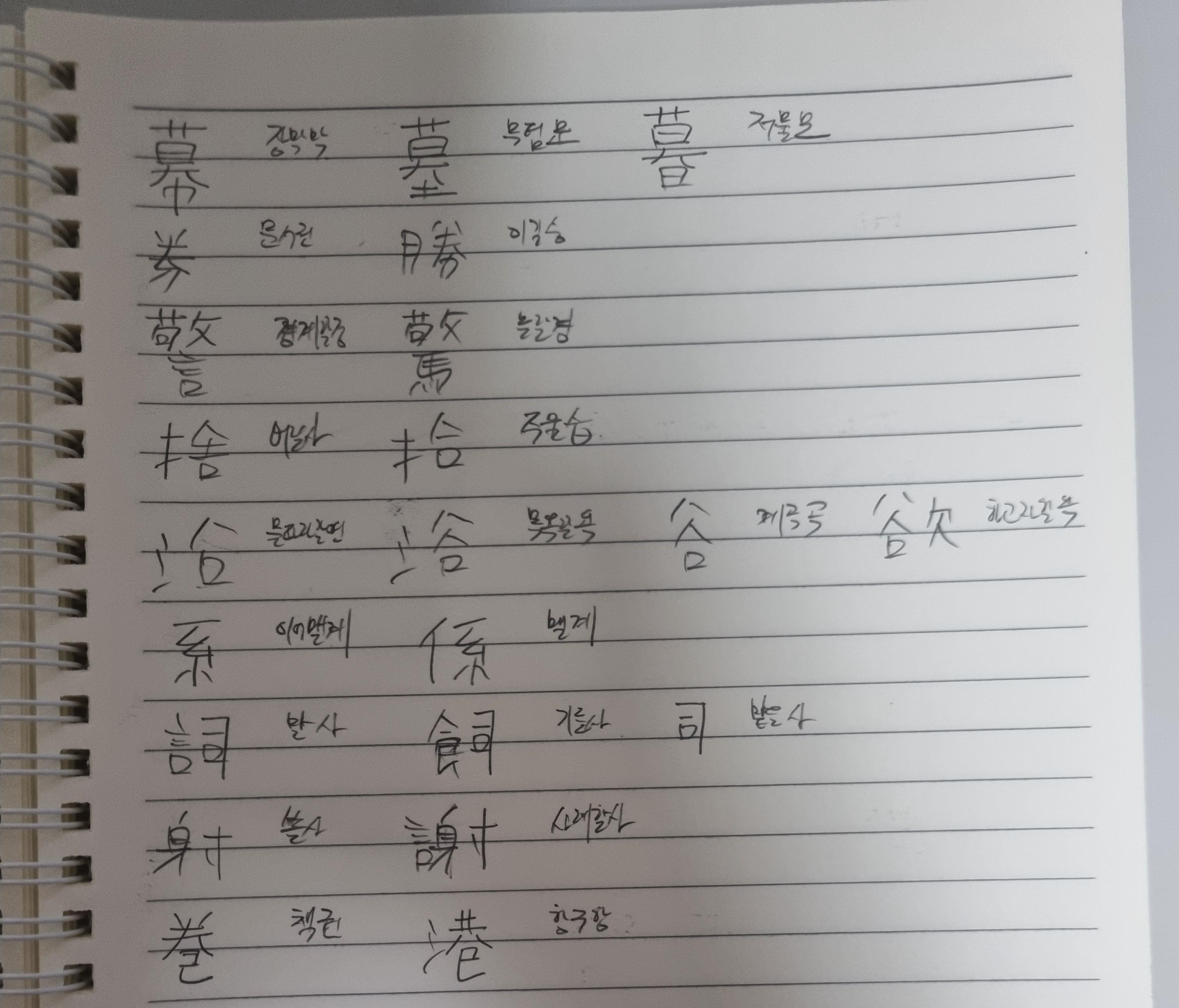 이렇게 할 수 있는 동기는 한자 공부가 너무 재미있다ㅋㅋ 단순히 외우면 외워지는 것도 재미있다. 이렇게 정직할 수가!ㅋㅋ 물리 연구하면서 연구실에 똑똑한 사람들에게 둘러 쌓여서 나의 똑똑함을 간과하고 있었다. 자만을 한 적은 한 번도 없지만 생각보다 똑똑한 구석이 있다. 예전에는 잘 못 외웠는데, 이제는 한자가 술술 외워진다.