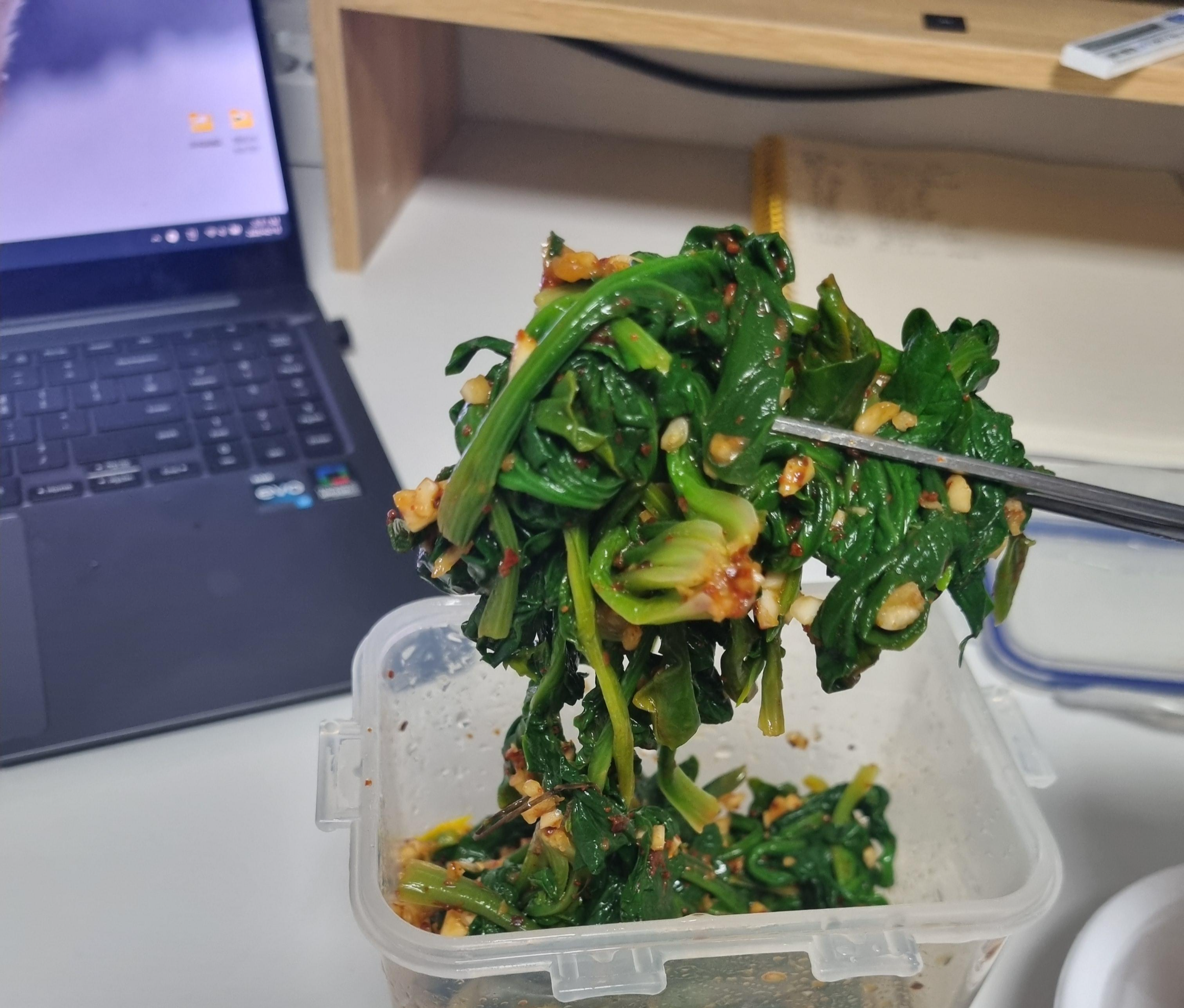 요즘 입맛이 없다. 정확히 입맛이 없다기 보다는... 뭘 먹어도 딱히 맛있는지 모르겠다. 그냥 더티하게 먹었을 때 맛이 클린하게 먹었을 때 보다 있어야, 그걸 감수하고 먹을텐데 그 차이가 딱히 느껴지지 않는다. 아마 더티하게 먹었을 때 내 머리에서 싫어하는 생각이 그걸 상쇄해서 이젠 클린하게 먹는 거에 기준이 맞춰진 것 같다. 최근에 라면이 땡겨서 먹었는데, 라면이 맛이 없다... 왜...? 그래서 요리를 다시 또 시작해 봤다. 입맛 없을 땐 내 입맛에 맞게 밖에서 사먹기 힘든 요리 해먹는 게 경험 상 최고다. 내가 갖고 있는 몇 요리 중 하나인, 바로 시금치 무침!
