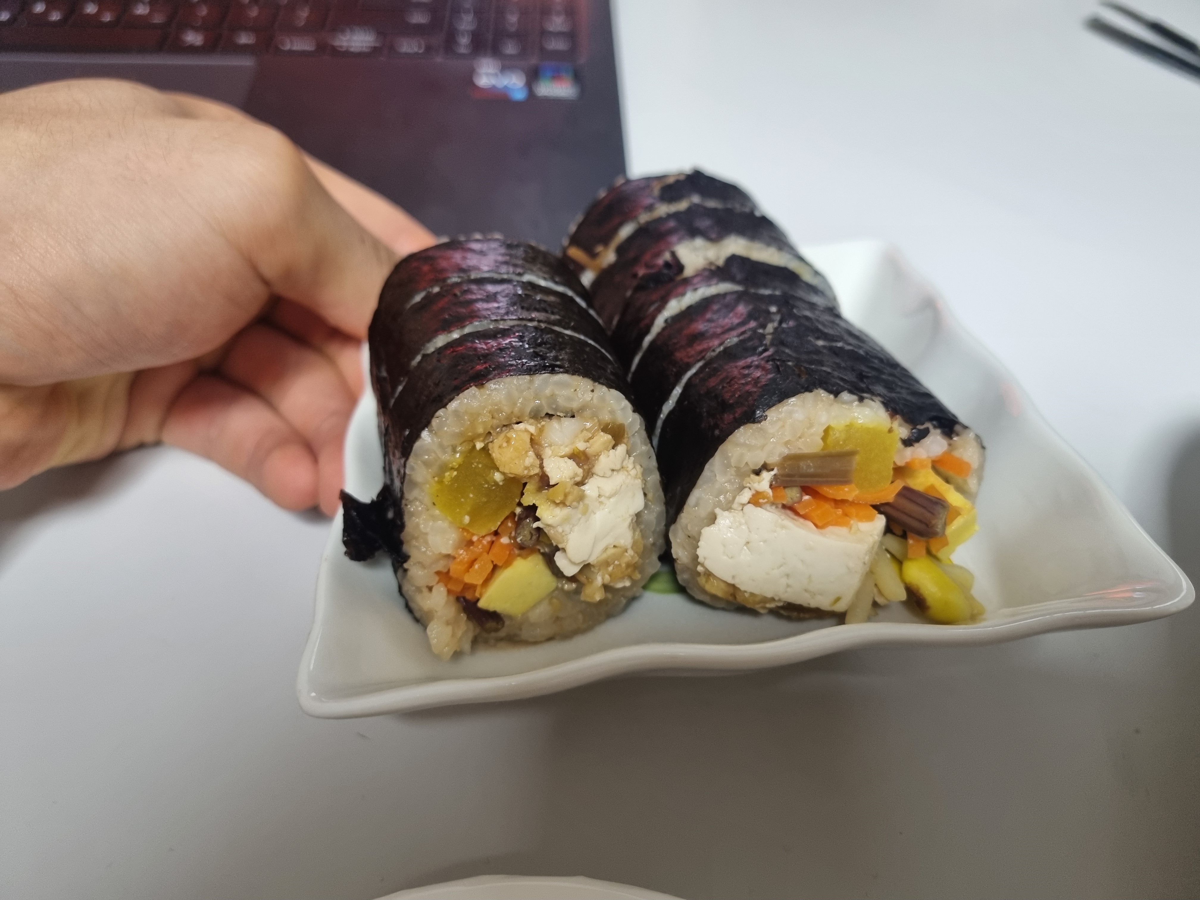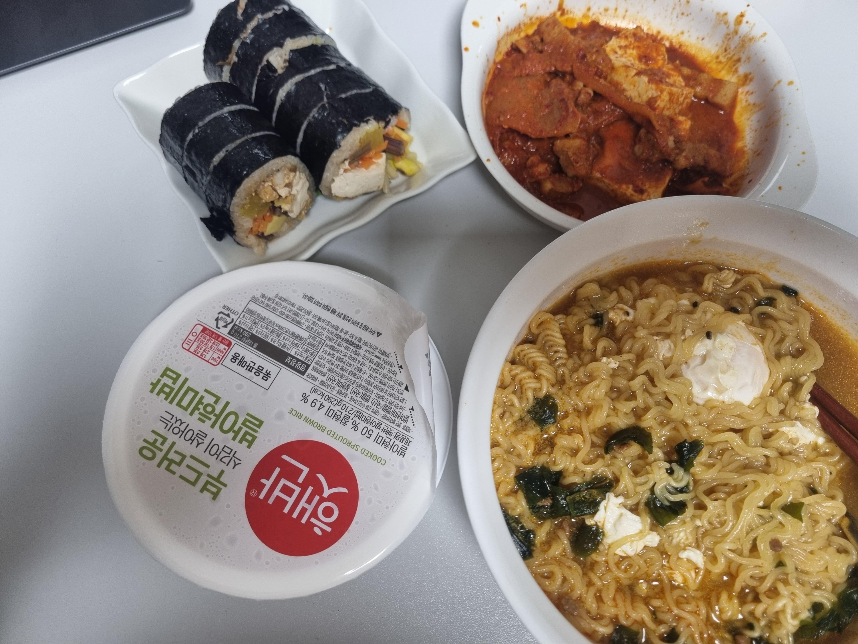 배달을 시키기에는 돈이 아까워 그냥 라면 하나를 샀다. 다른 것도 하나 살까 하고 김밥 코너를 봤는데 통영식 김밥이 있다. 통영에 통영식 김밥이 있나? 내 고향인데 그런 건 처음 들어봤다. 충무김밥이면 모르겠지만. 그래서 사봤다. 통영에 이런 김밥이 있었나? 두부가 들어간 김밥? 이런 건 처음 봤다. 사기를 당했다.