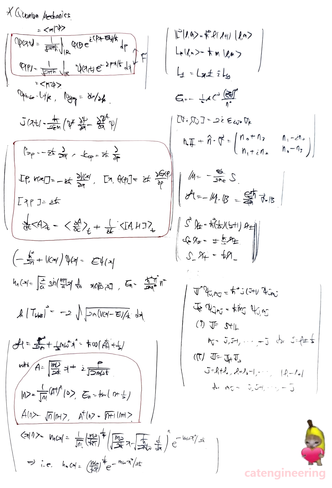 다시 학부 과목을 공부하면서 느낀점은 첫 번째로 책들이 참 잘 써졌다는 것이다. 알고 보니 참 많은 내용을 담고 있었고 다시 보니 몰랐던 개념들이 잘 이해되는 것 같다. 마치 수학의 정석을 n회독 하는 느낌이다. 두 번째는 여전히 숨기는 내용들이 많다는 것이다. 중학교 때는 $x^{2}+1=0$의 근은 없다고 하다가 사실 허근이 있었다고 거짓말하는 정도는 아니지만, 책에서 서술해주는 statement들이나 공식들이 하나하나가 사람 이름이 붙을 정도로 엄청난 과정의 결과물이라는 것이다. 대표적으로 각운동량과 스핀의 덧셈...