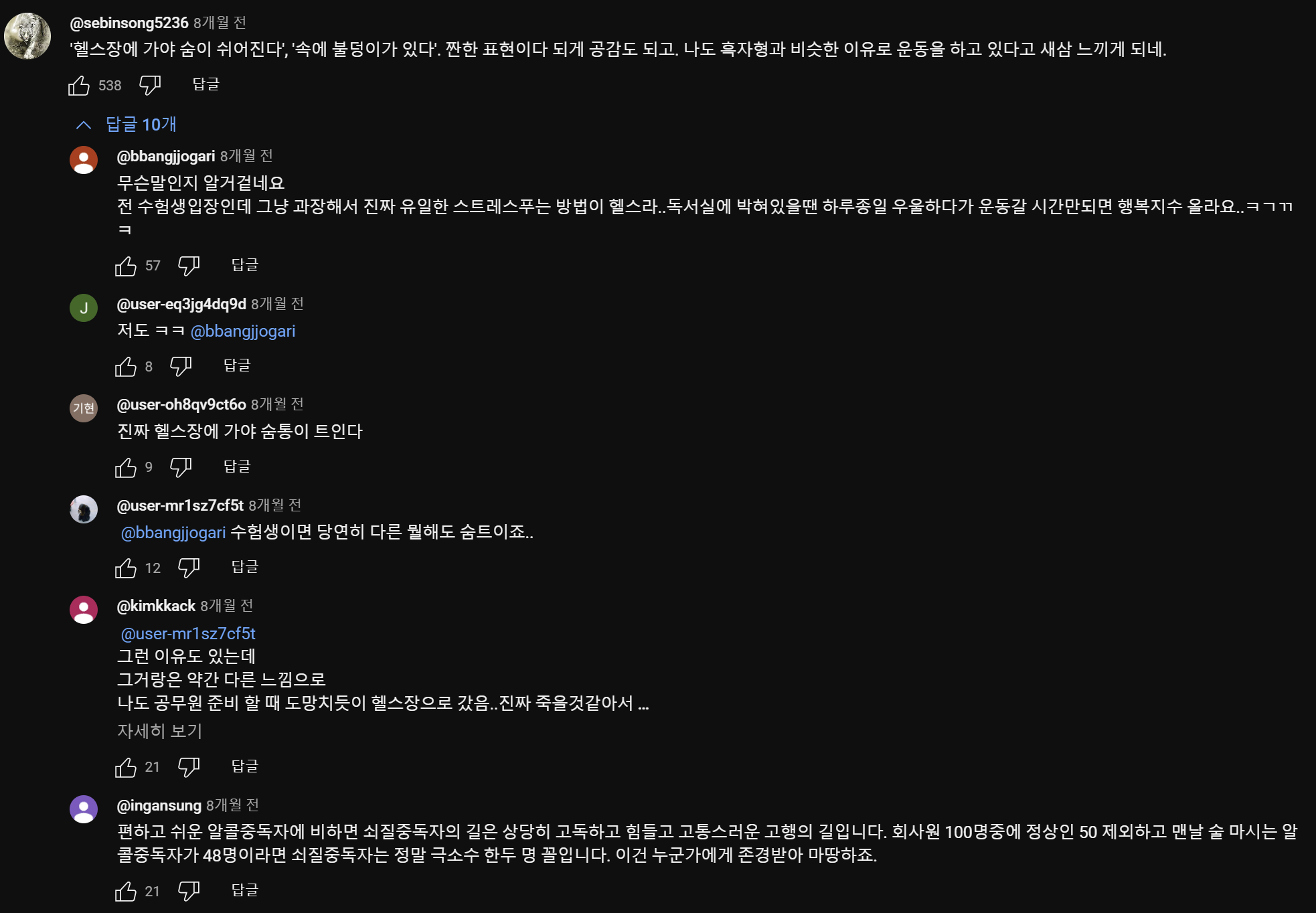 진짜 헬스는 정신병이 맞다. 나도 딱 저기에 살고싶어 파다ㅋㅋ 역시 세상에 나랑 비슷한 사람은 참 많다. 마치 내가 연구하고 싶은 거는 남이 다 해놓은 거 마냥...ㅋㅋ 진짜 헬스장에 가야 숨통이 좀 트이는 것 같다. 가장 행복한 시간은 운동 마무리 짓고 집에 돌아오는 길... 다들 힘들게 산다 참ㅋㅋ